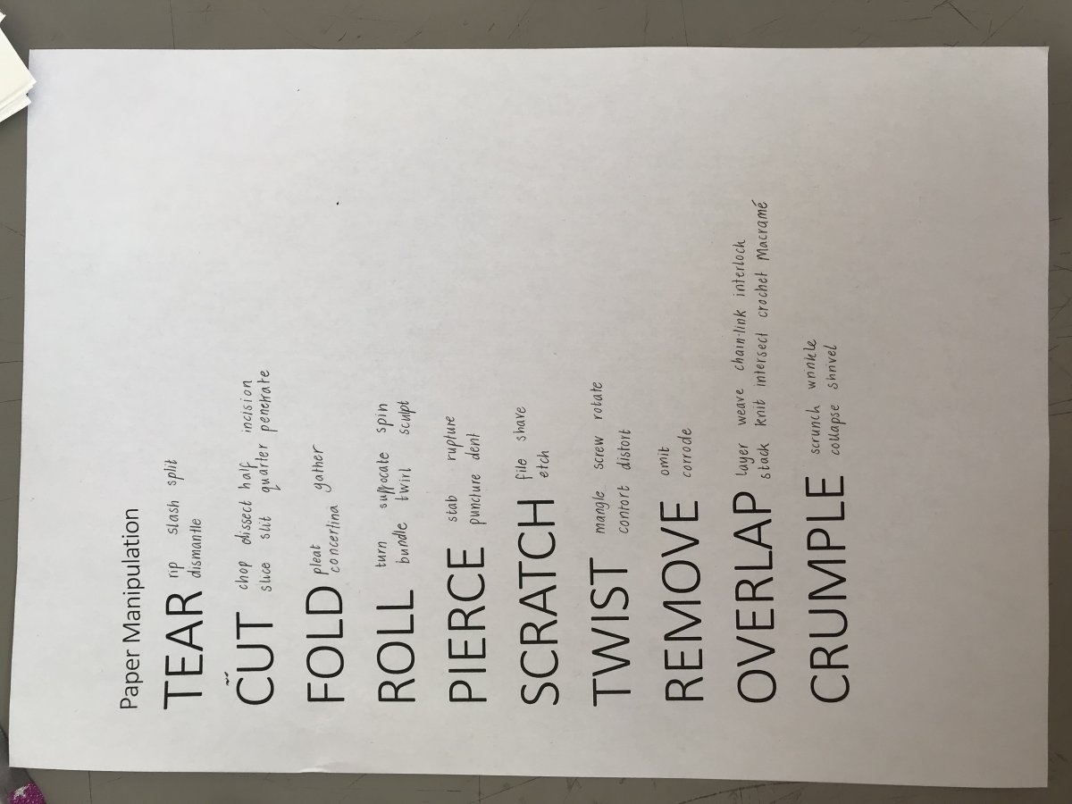 Fold: I was inspired by the way that folding something makes that object change each time either getting smaller, creating movement or with more volume. Through discussion I learnt that origami is a way of folding and was informed of different techniques of origami which could be used. At first I found it difficult to be motivated by folding however after doing more sketches based on just the material I could incorporate folding in various ways.